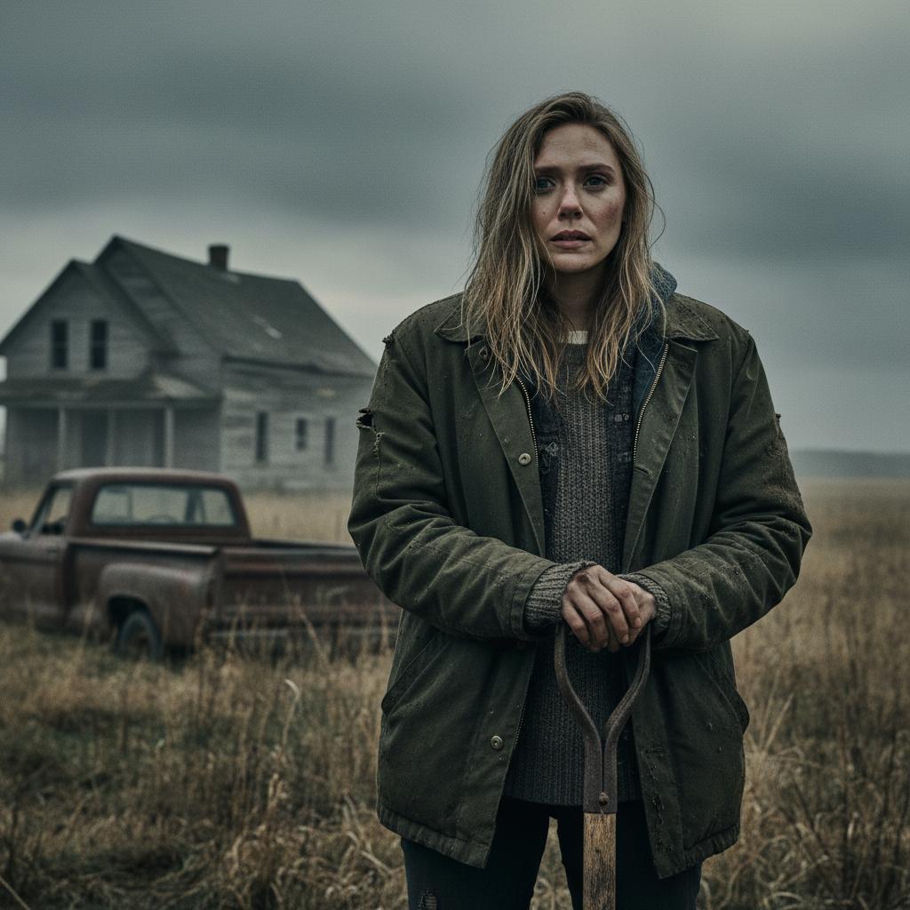 Elizabeth Olsen in a tense, rural setting, drawing from Martha Marcy May Marlene's chilling atmosphere