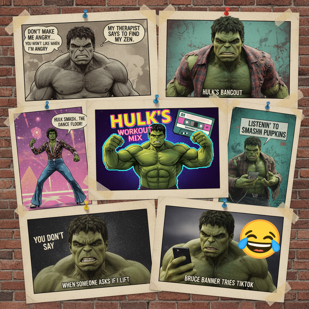 No other Marvel character has been memed to Hulk’s degree. “Hulk Smash!” lives on in GIFs, classroom jokes, and protest signs. From the classic “puny god” moment to viral edits of Hulk refusing to transform, rage has become internet shorthand for everything from Monday morning blues to political fury.