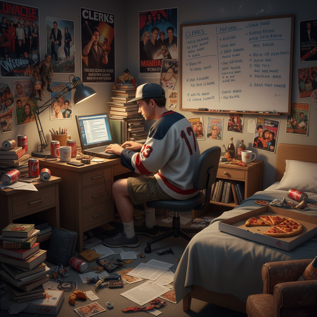 With little more than maxed-out credit cards and the unwavering support of friends, Smith filmed Clerks in the convenience store where he worked, shooting at night to avoid getting fired. The production was guerilla in every sense—shot in 21 days for just $27,000, with Smith himself selling his beloved comic book collection to scrape together the budget (Source: Scraps from the Loft, 2024). Clerks wasn’t just a movie; it was an act of cultural defiance, proof that you could build a cinematic world from the ground up with more vision than cash.