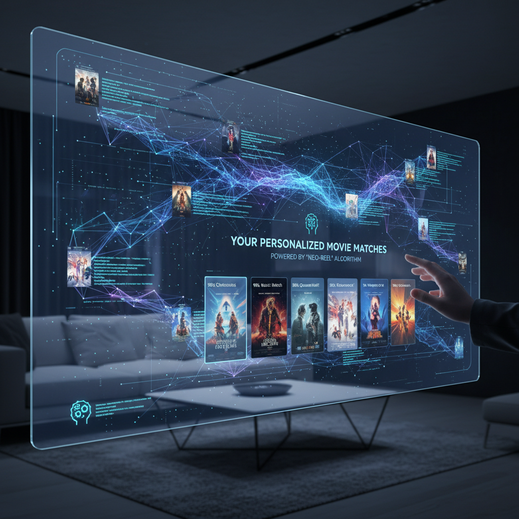 Alt text: AI blending with movie reels to create recommendations for movie break limits movies.