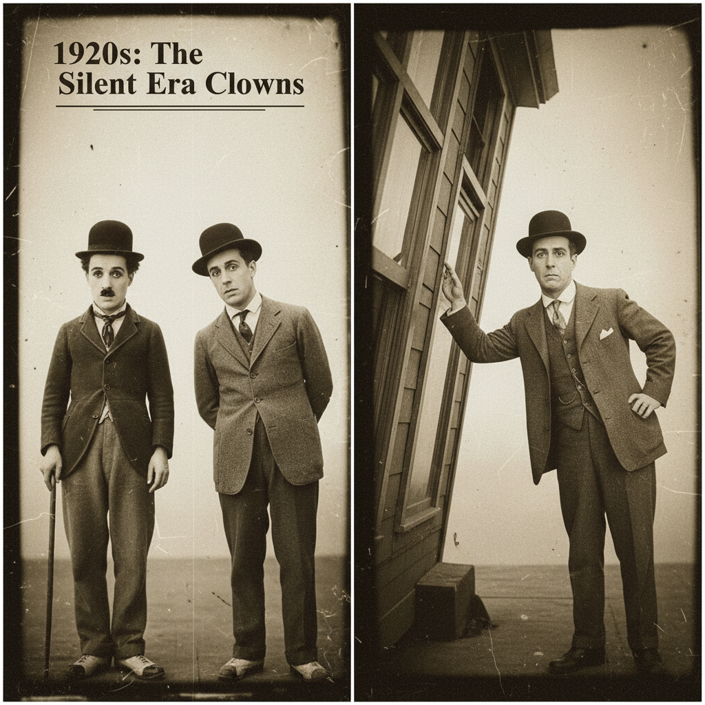 - 1920s: Silent slapstick—visual gags, minimal dialogue.