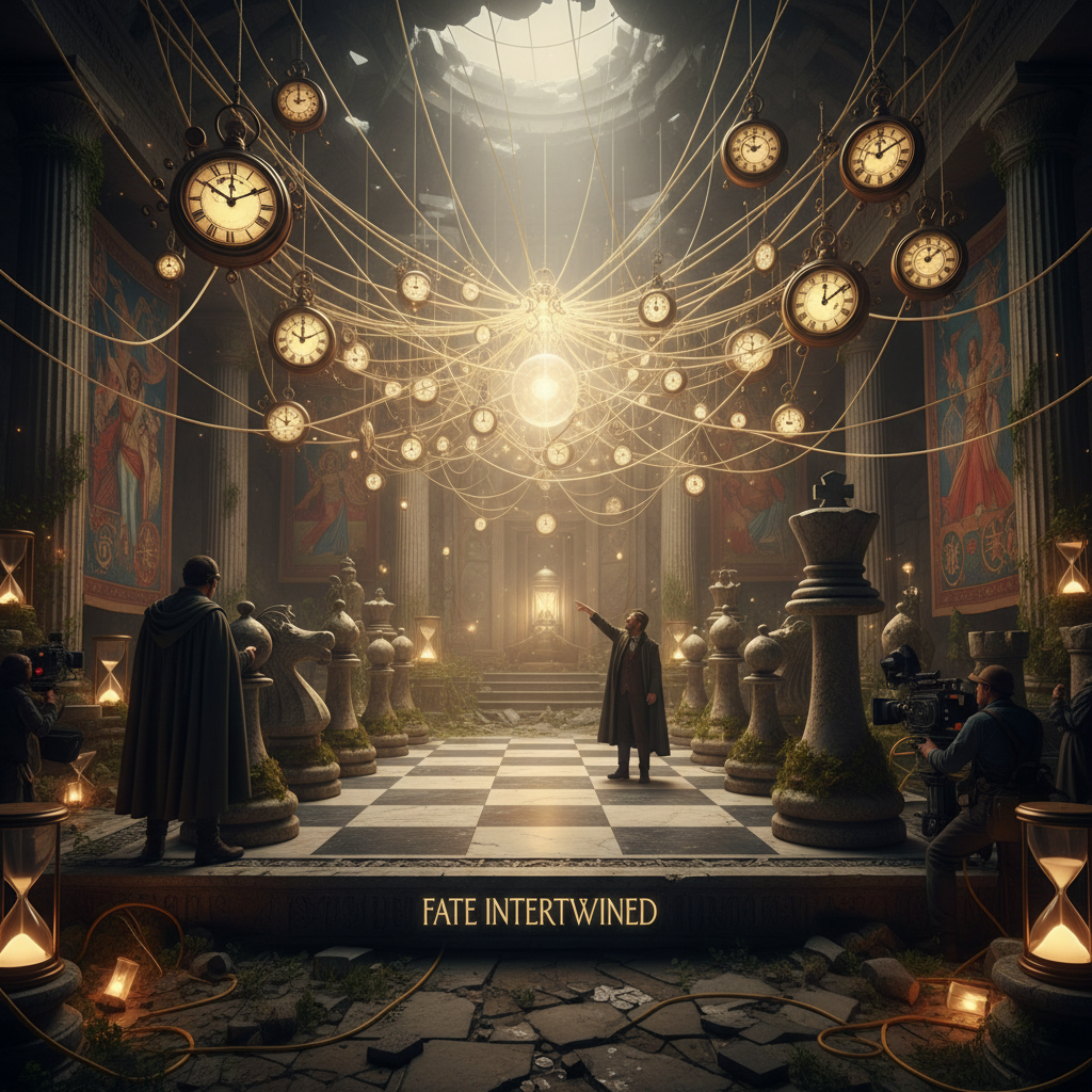 Alt: Artistic depiction of randomness and destiny merging in cinema, fate in movies