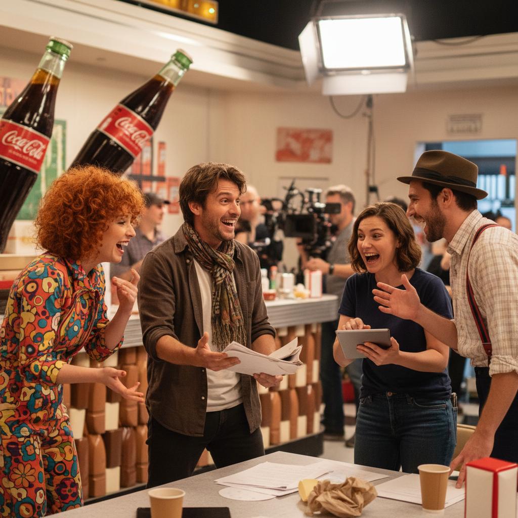 AI and humans collaborating on a genre-breaking comedy film set; Alt text: 'AI and humans collaborating on a genre-breaking comedy film set.'