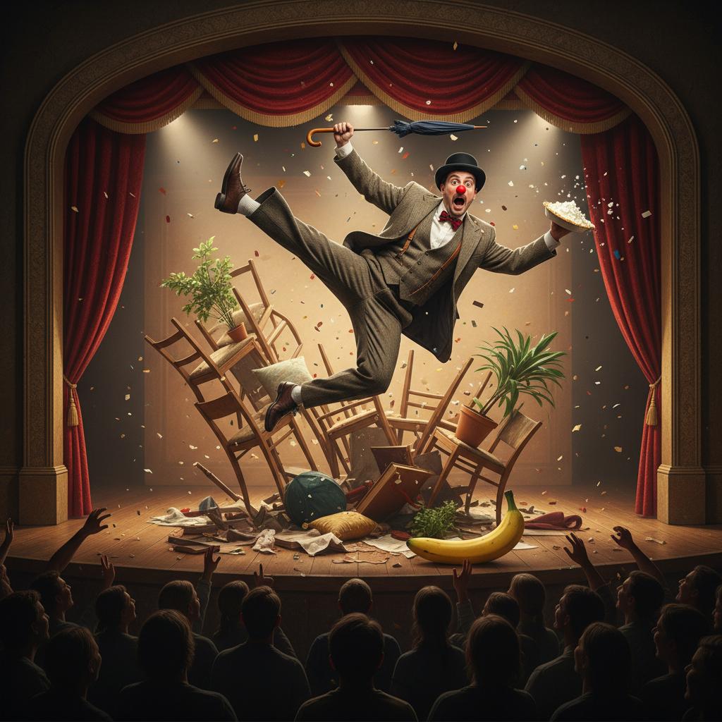 “Rather than dying, slapstick mutates. As long as there’s gravity, someone will slip—and we’ll laugh.” — Comedy Historian Raj Patel, Comedy Heritage, 2023