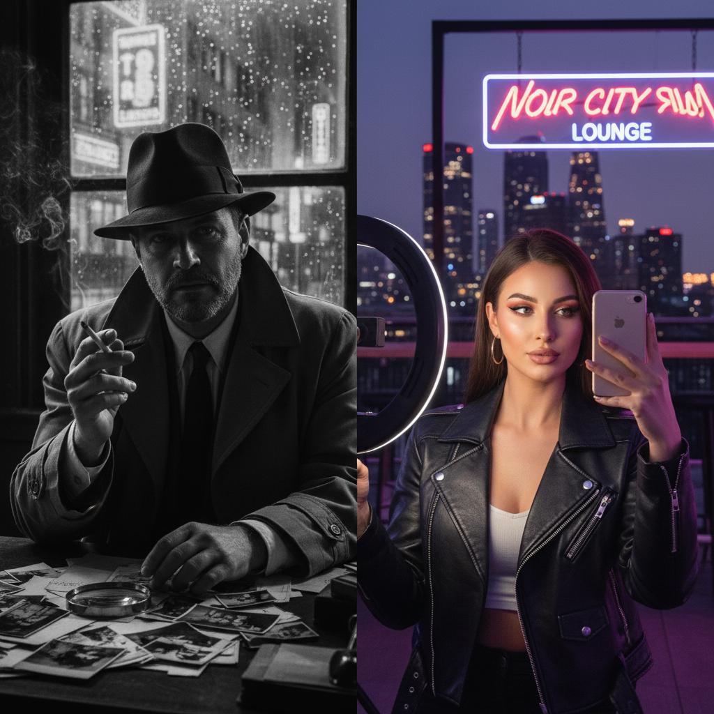 - Define your mood: Decide between classic black-and-white tension or neon-drenched neo-noir.