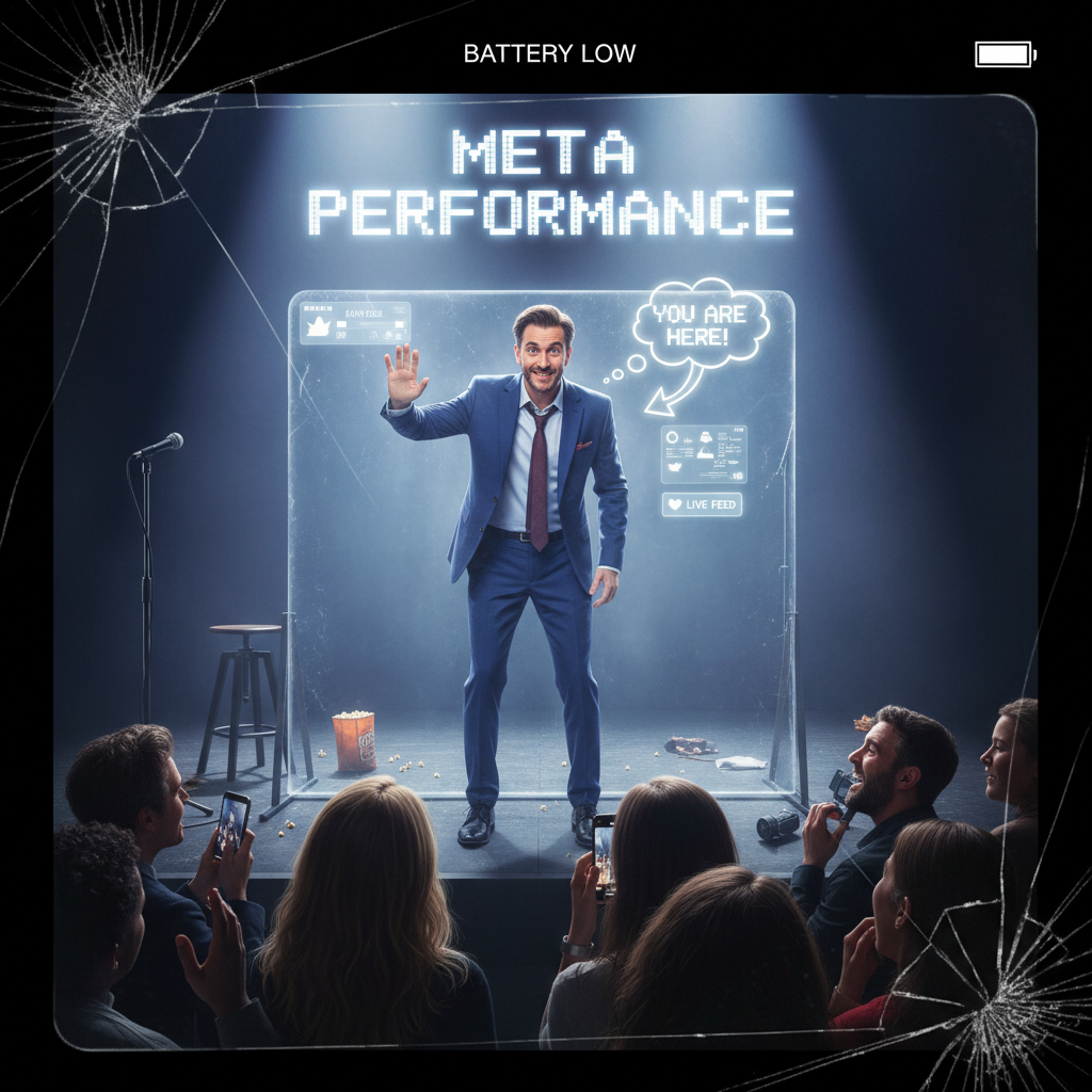 Humor that plays with the structure and conventions of storytelling, often referencing itself or the act of being observed.