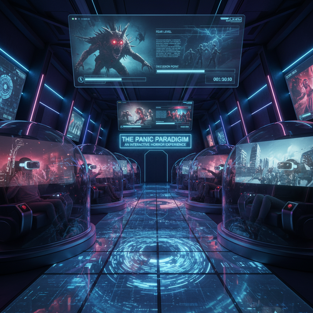 - AI-generated scenarios: Unique panic films tailored in real time to your biometric data.