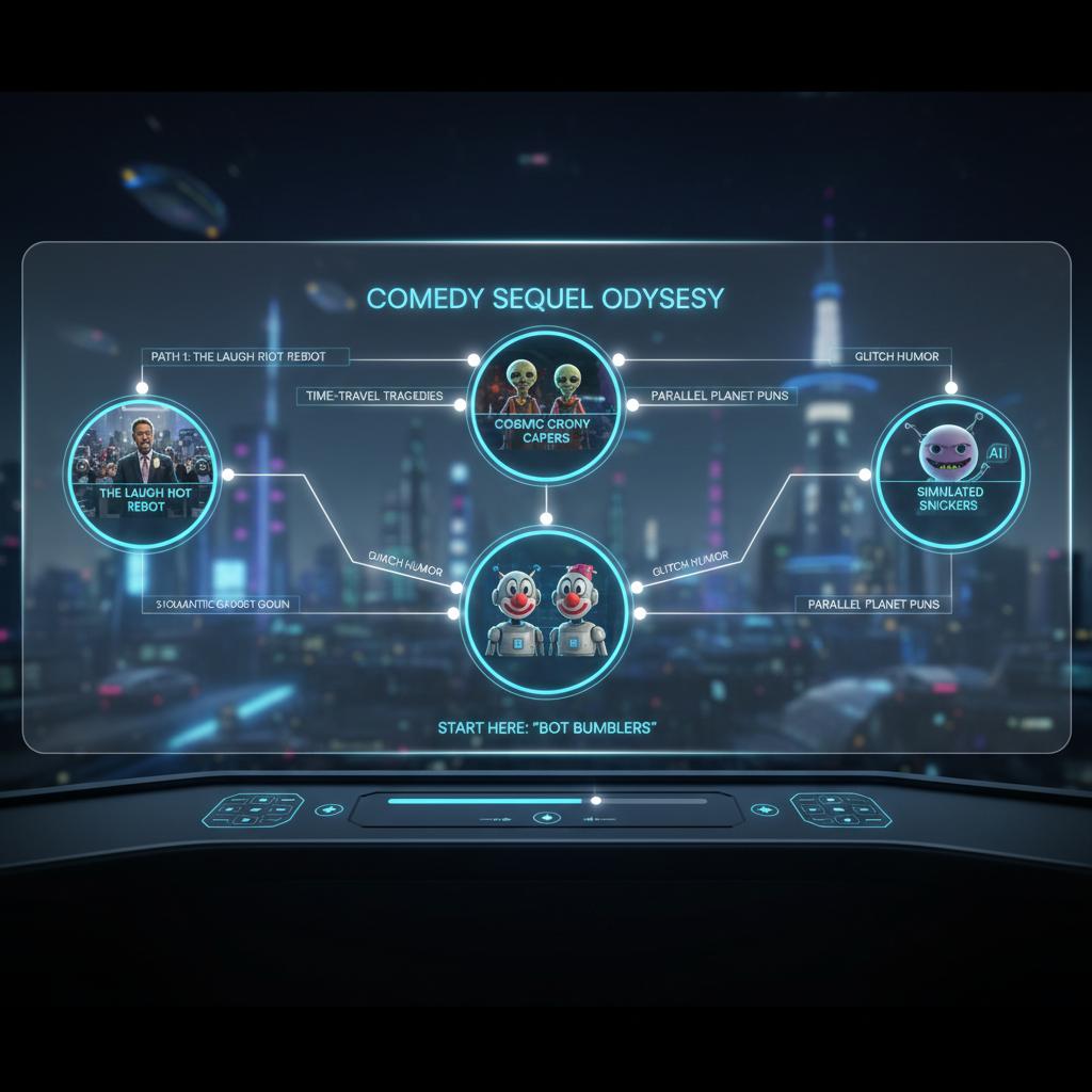 A photo imagining the future of comedy sequel bait: streaming platforms displaying interactive, branching choices.