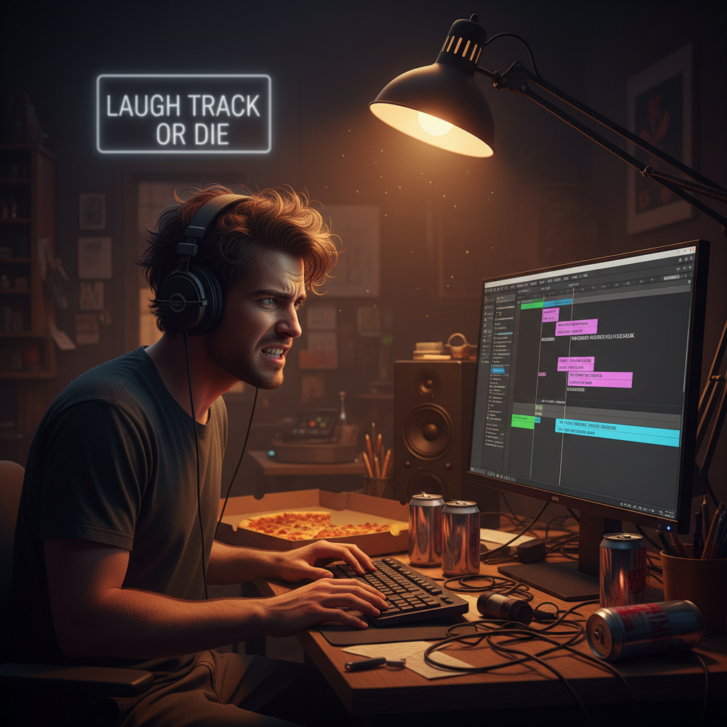 Editing software timeline highlighting the precision of comedic beats in movie shortened comedy movies.