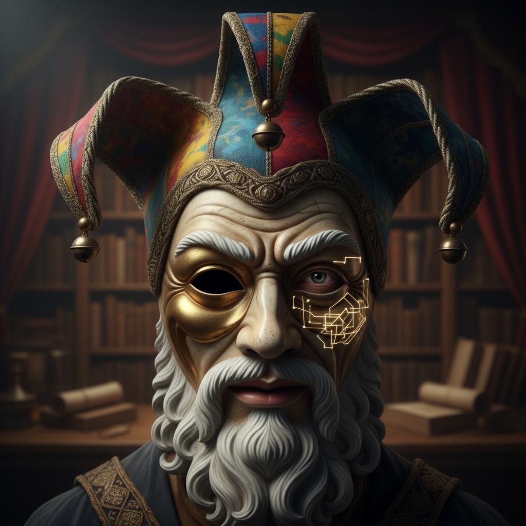 Alt text: jester mask with hidden philosopher’s face, symbolizing the intelligence behind smart comedies