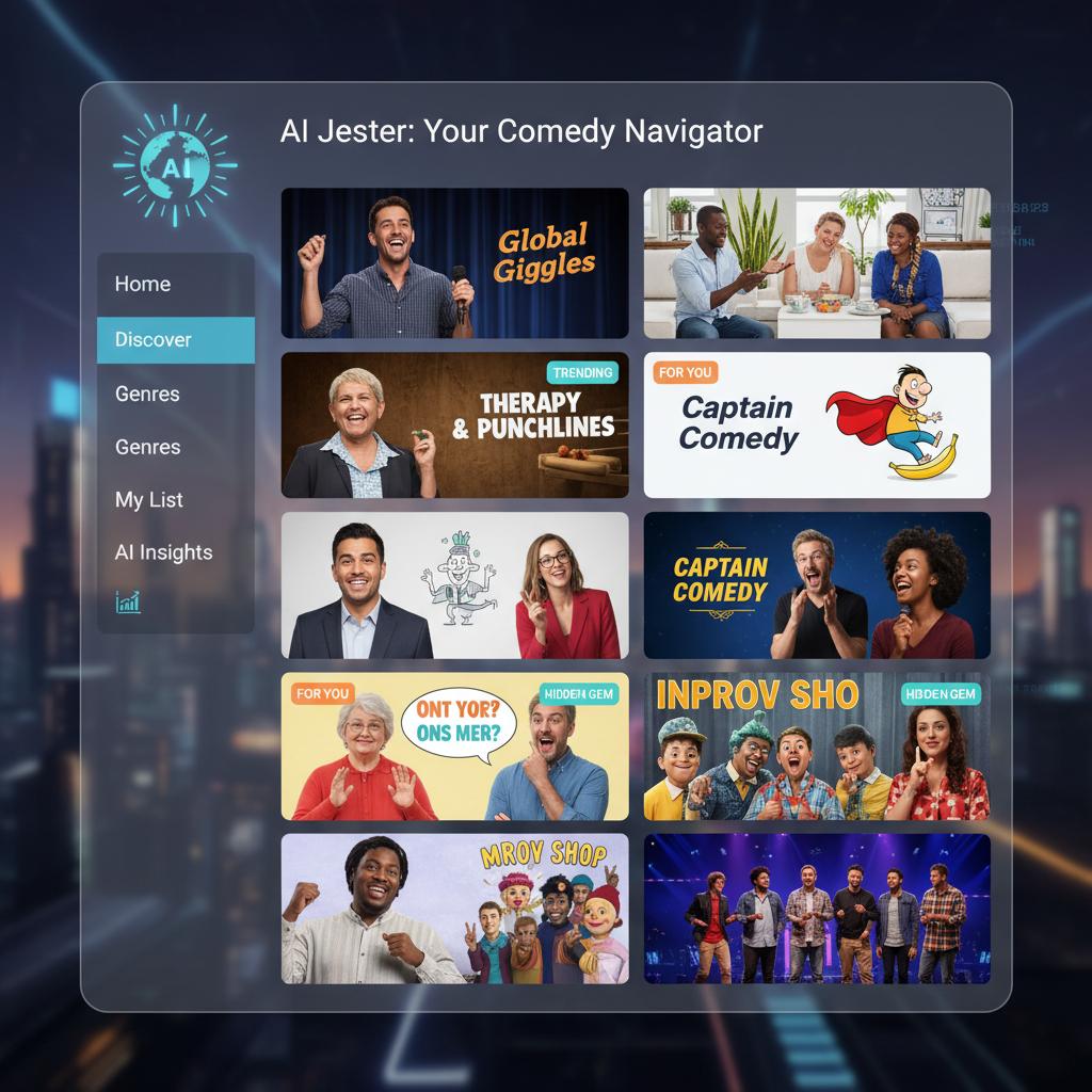Alt text: streaming dashboard showing AI-curated smart comedies, reflecting global diversity