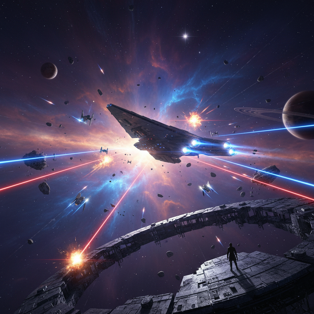 Classic examples include Star Wars (1977)—the archetype, blending space battles, mystical orders, and family drama; Dune (2021)—a politically charged epic of prophecy and power; and Battlestar Galactica (2004), which reinvents the operatic form for television, merging survival drama with moral and political complexity. Modern gems like The Wandering Earth II and Space Sweepers push the boundaries with diverse casts and global stakes.
