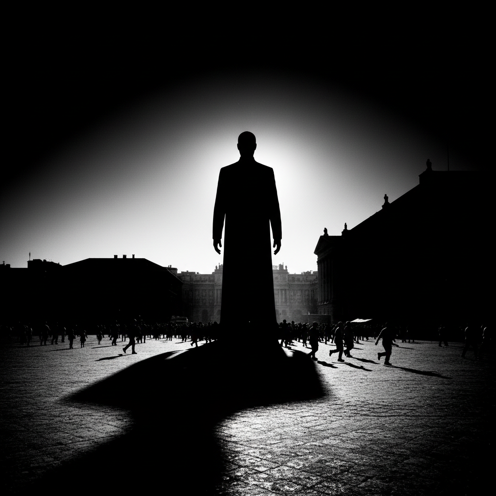Alt: Visual metaphor for savior complex, shadow of dominant figure looms over vulnerable crowd in movie triumph movies.