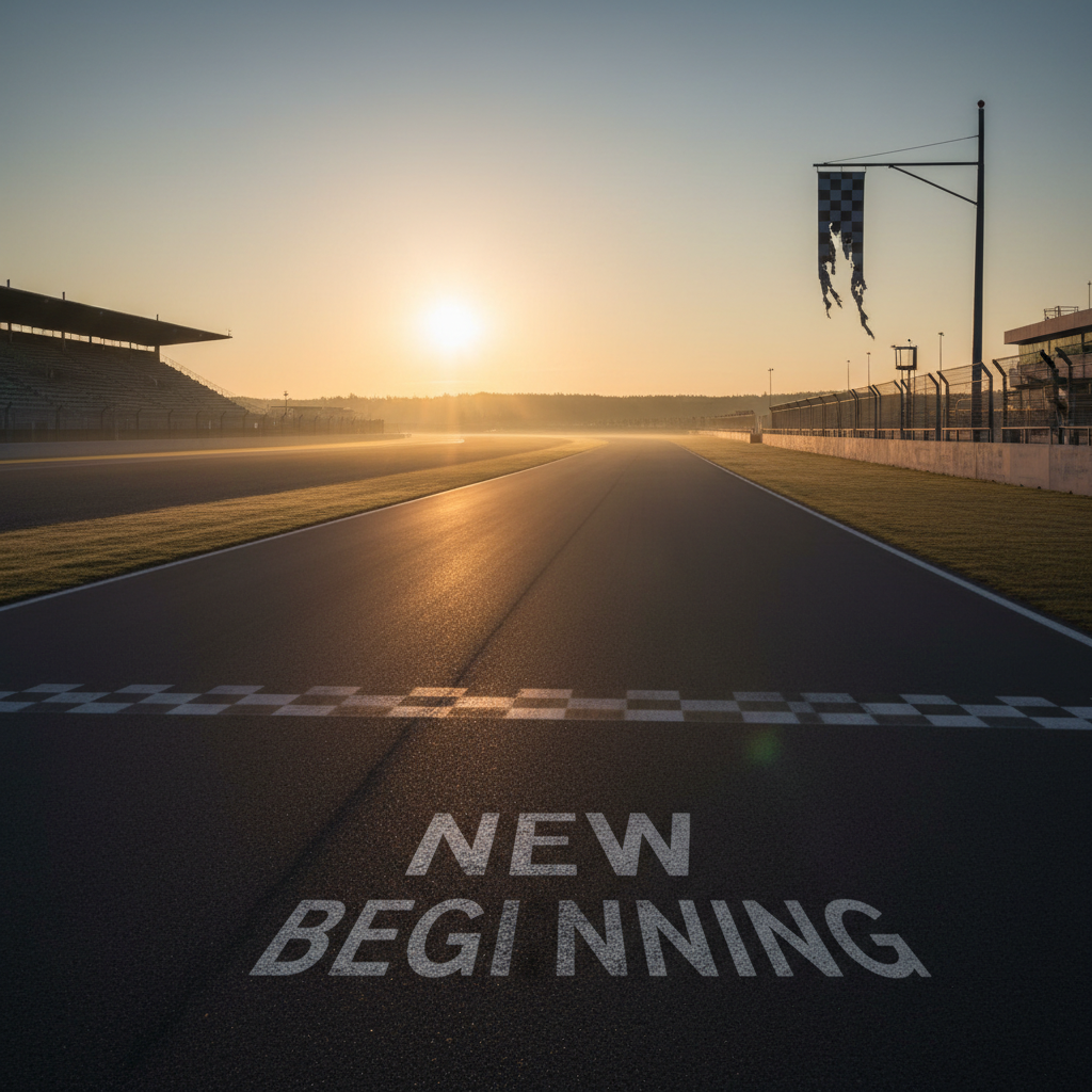 Alt text: Dawn over an empty racetrack, symbolizing the future of car movies and racing films, ideal ending for an article about movies about cars and racing.