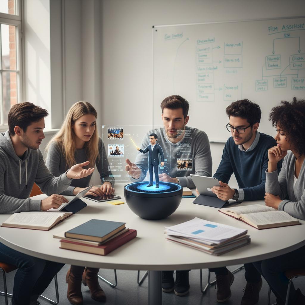 Students using movie assistant for educational discussion, highlighting AI-powered group film curation.
